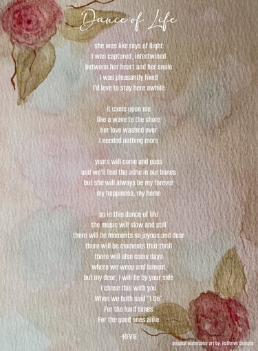 Taking your story and setting it to poetry and printing it onto original water-color paintings created by my beautiful and talented mother, Joyce, of ReThrive Designs.